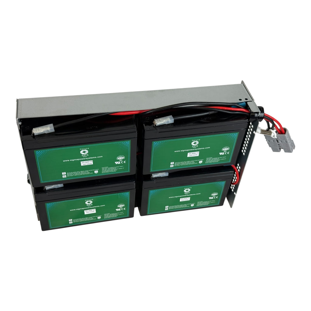 Part no SG-RBC23 (Rechargeable battery Cartridge) compatible with battery cartridge used in OEM, APCRBC23. One cartridge includes four batteries 12V7Ah batteries connected to form 24V14Ah Cartridge. The batteries used are 12V7Ah batteries with T2 terminals (0.250 inch) part number SG1270T2 applications. Each SUA1000RM2UTW battery cartridge is assembled with fresh voltage matched high capacity and high rate batteries for longer life. This battery cartridge is built with fresh batteries from the same manufacturing lot for longer life.