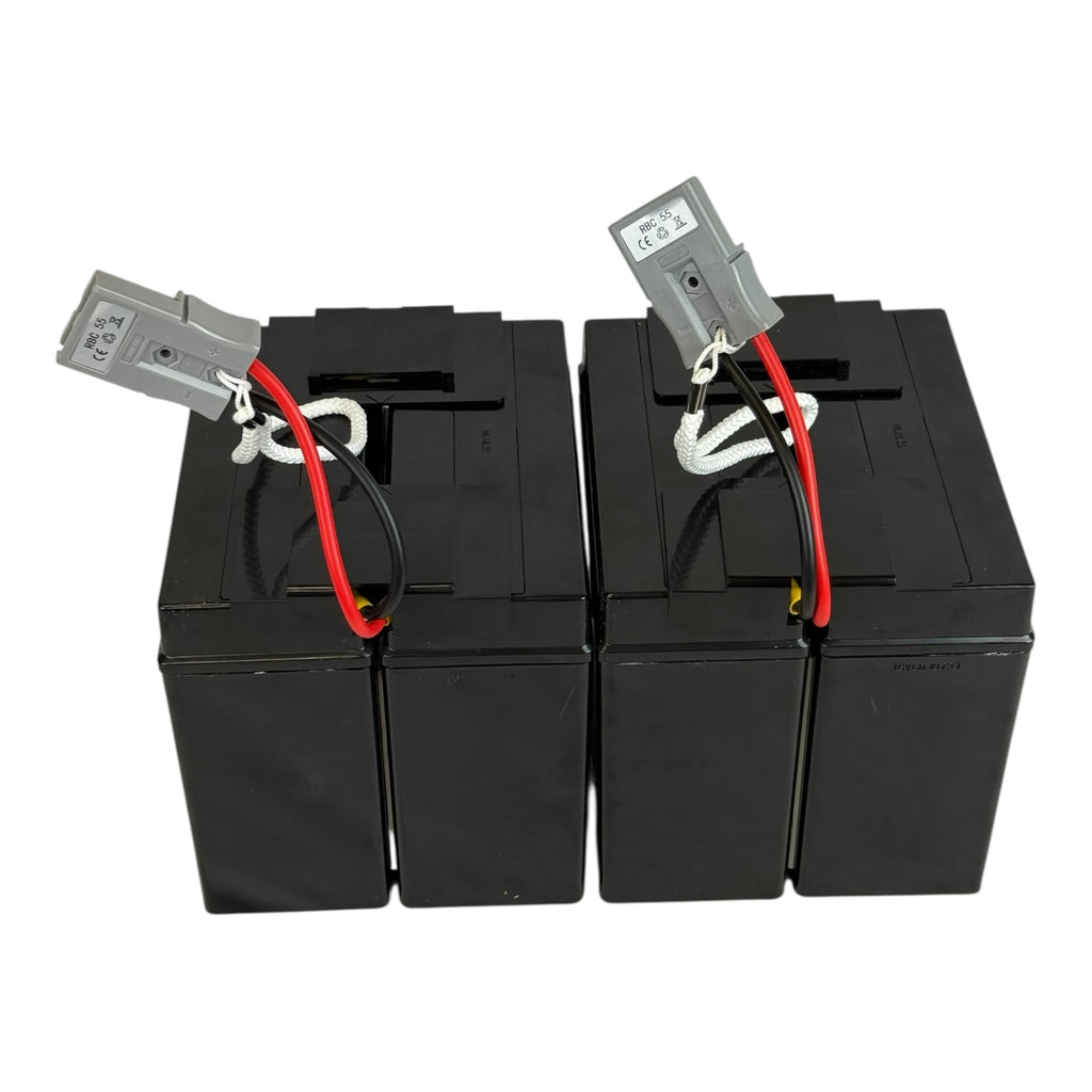 Part no SG-RBC55 (Rechargeable battery Cartridge) compatible with battery cartridge used in OEM, 24V18Ah battery Cartridges.  Two 24V18Ah battery cartridges make one cartridge of SUA3000XL-NETPKG UPS. Connected in series with fuse.  Each SUA3000XL-NETPKG battery cartridge is assembled with fresh voltage matched batteries for longer life. This battery cartridge is built with fresh batteries from the same manufacturing lot for longer life.